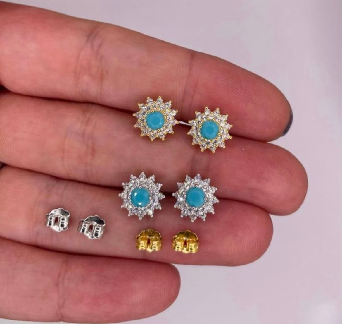 Turquoise CZ Stud Earrings